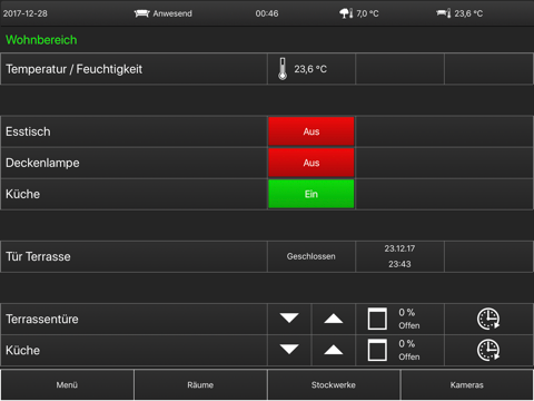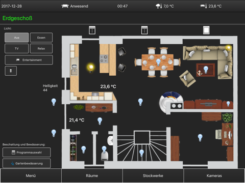 Diese App erfordert die Installation eines IP-Symcon-Server-Systems (http://www.ip-symcon.de) mit IP-Symcon Basic, IP-Symcon Professional oder IP-Symcon Unlimited in der Version 7.0 oder höher und die Installation des IPSView Designer (http://ipsview.brownson.at) in der Version 6.3 oder höher. Zusätzlich muss die entsprechende Hardware der Gebäudeautomation installiert sein. Jegliche Kategorien, Variablen und Geräte, die auf den Screenshots zu sehen sind, sind Muster eines Beispielprojektes. Ihre IPSView App gestaltet sich individuell anhand der Konfiguration Ihres IP-Symcon-Server-Systems und des IPSView Designers. Bitte beachten Sie dazu die Dokumentation zu IP-Symcon und IPSView.