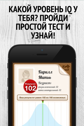 Ни разу прежде не проходил подобного рода тест, вначале даже растерялся, не знал, что надо делать и как решать задачи, но минуты через 2-3 разобрался и прошел тест. Результат 102 балла -(Высокий уровень средних показателей) вот. Биологический возраст 17, интеллектуальный 17.