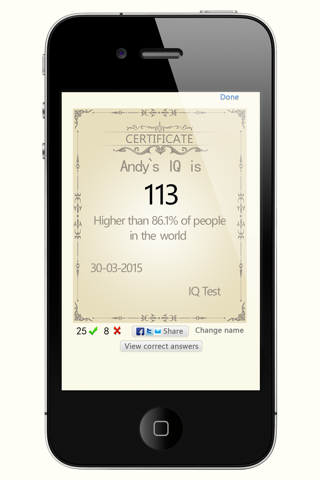 - When you finish test, you will receive a certificate of your IQ and th ranking.