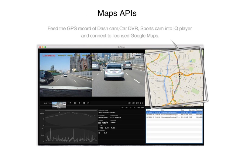 iQ player is the best tool for the dash cam ( car DVR, car camera) and action cam (sports cam) users.