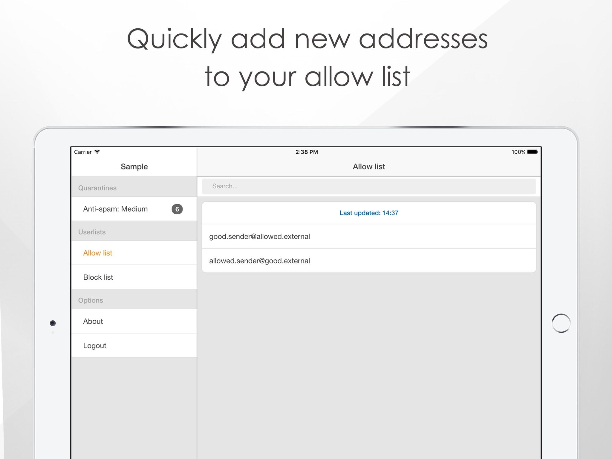 • Manage blocklists and allowlists