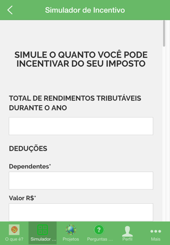 O APP IR do BEM tem o objetivo principal de ser uma ferramenta para calcular quanto cada pessoa pode destinar até o teto de 6% de seu Imposto de Renda para ações culturais ou esportivas.