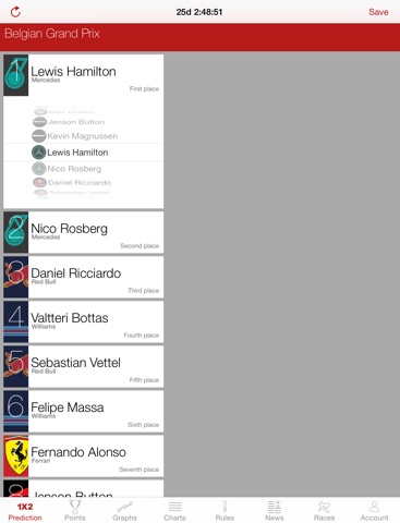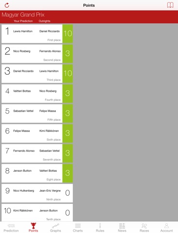 Pick the top ten driver positions, pole position and fastest lap. You can also predict which driver in each team who you think will finish first.