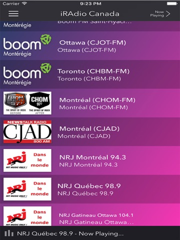 Lapplication « iRadio Canada » vous permet découter une sélection des stations de radio du Québec sur votre iPhone, ipad ou iPod touch.