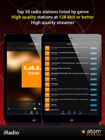 iRadio offers you the top radio stations ordered by the music style you want. Listen the music you want just pressing one button. Do not waste your time searching through hundreds of channels of dubious quality.