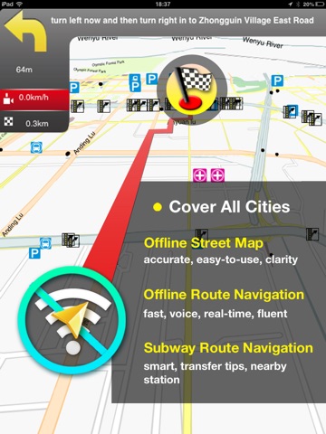1.Completely offline map and navigation,work without network connection or data roaming which helps your save money.