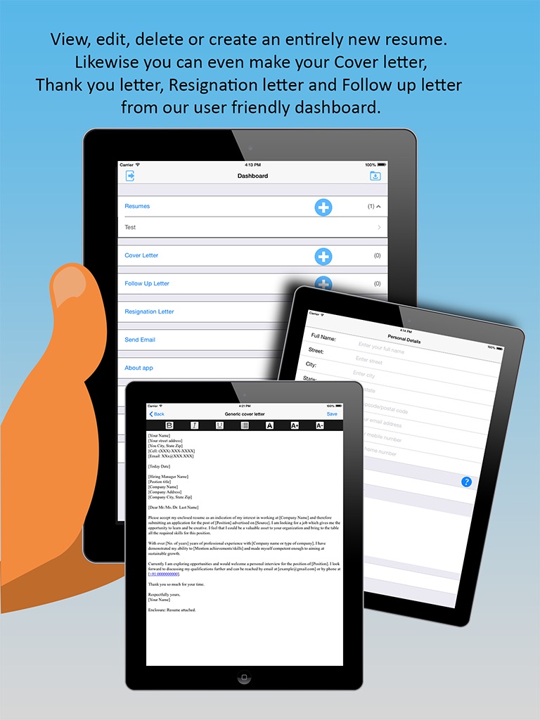 --> iResumes App is available in both iPhone and iPad.