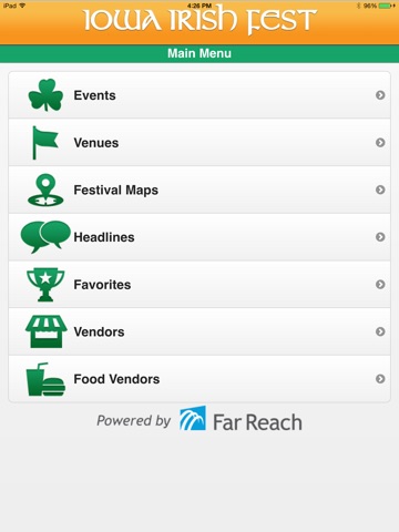This Irish Fest Events app brings the festivals scheduled events, vendor information, announcements and festival maps right to your mobile device.