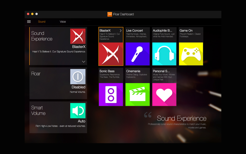 iRoar Dashboard is an application specifically designed for the Creative iRoar speaker. When connected to an iRoar speaker, you can select a preconfigured audio profile or personalize your audio settings.