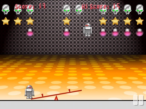 With a side to side movement to the devices accelerometer you can control where the soldier falls. Depending on where on the seesaw it lands it will make its partner fly higher to catch a weapon! As simple as that... Or is it? Its up to you to fond out!