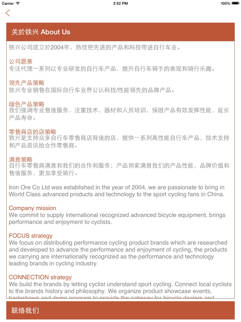 Iron Ore 成立于 2004 年,热忱把先进的产品和科技带进自行车业。现发行B2B软件,支持各商业伙伴透过手机随时随地采购自行车及其配件。完全免费,高效便捷,把握市场无限商机,手机内轻松完成落单程序