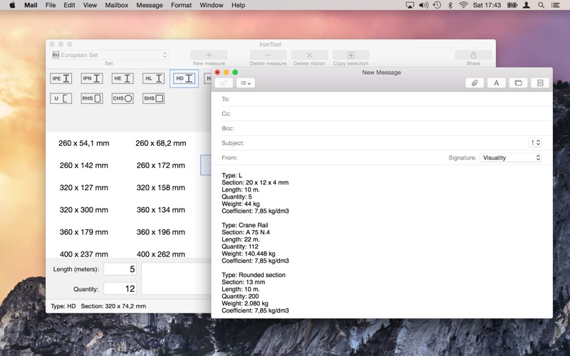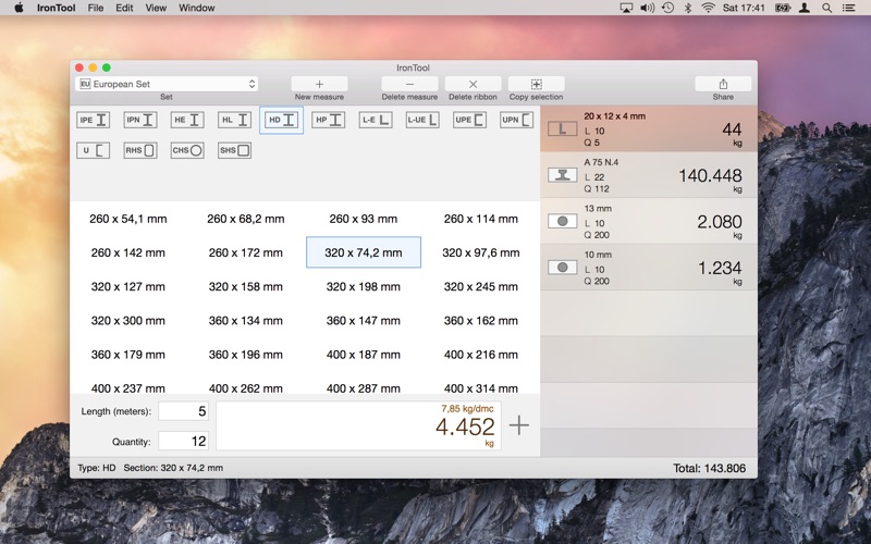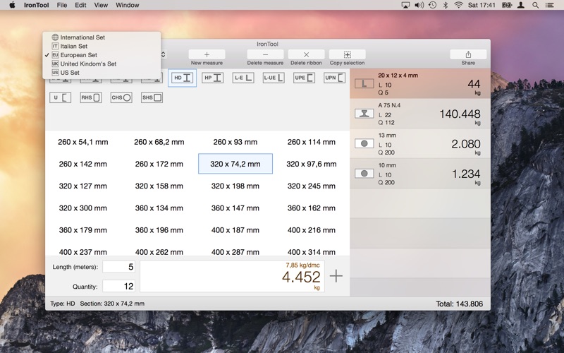 - Calculate the weight of the iron by inserting length and quantity and choosing the section