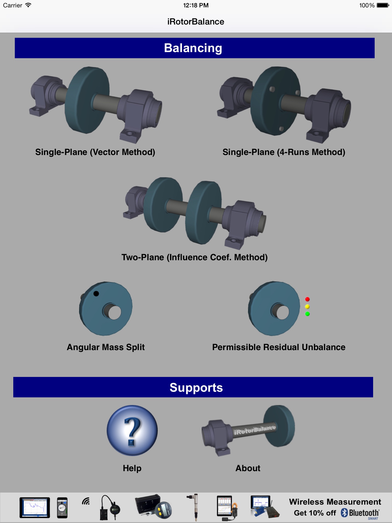 iRotorBalance is a educational and technical calculator for balancing of rotating machinery. The application calculates the correction balancing weight and its angular position given the amplitude and the phase of the measured vibration.