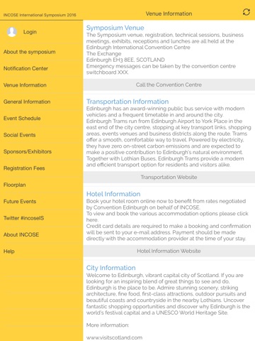 The IS2016 app lets you browse times, locations, and descriptions for sessions, and special events and more information about the INCOSE international Symposium. Use it to mark your favorites, get notified of the latest news, and access maps to find your way around Edinburgh International Convention Centre.