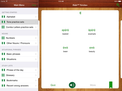 Overall, good app. What I really like is that they have two separate Yoruba speakers with distinctly different Yoruba accents- that is a great touch.