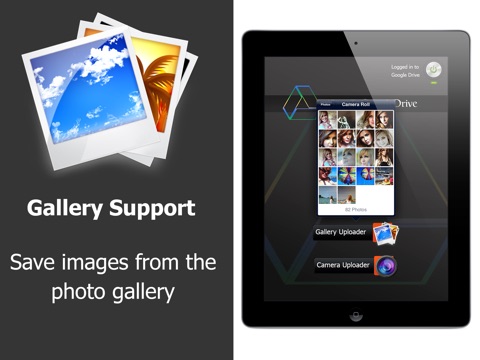 PLUS using iSaveToGoogleDrive, you can take pictures which will be saved automatically to your Google Drive.