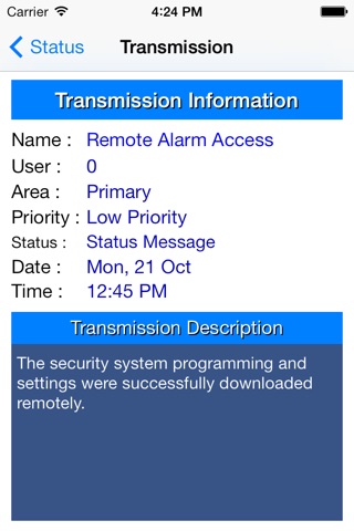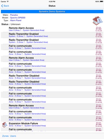 The Symetrix iSecure app allows you to view live alarm panel status information, including your systems arm and disarm status, who and when last armed or disarmed your system, as well as comprehensive security system status information.