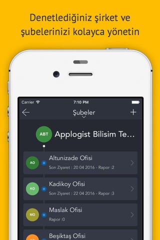 Sistemde tanımlı 20+ alandan birinde denetim yaparken kategorilere ayrılmış maddeler içinden hızlıca seçim yapabilirsiniz ve hızlıca not alabilirsiniz.