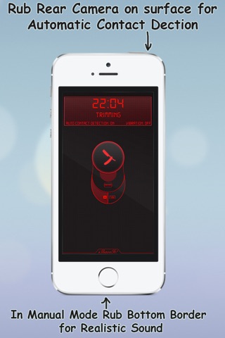 3- Manual mode: If you put the app in manual mode, you need to drag down the power button to simulate contact and trimming. Manual mode helps you to use button border of your iPhone (speaker side) for get more realistic sound.