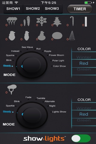 Creating your own holiday tree/lights light show is as simple as a tap of your finger. Choose from a selection of following pre-programmed functions that synchronized to ShowHome App.