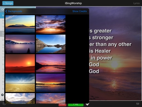 Plug iSingWorship into your TV/projector with a cable (or wirelessly via AirPlay) and view song lyrics on a large screen. Also included are a variety of inspirational backgrounds that can be displayed behind the lyrics.