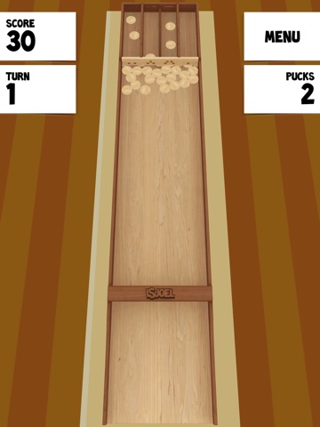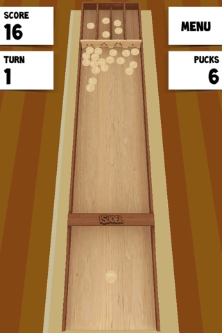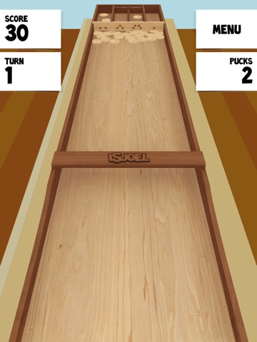 iSjoel (pronounced izjool) is based on the popular traditional Dutch party game Sjoelen. The goal of Sjoelen is to slide 30 wooden pucks on a shuffle board into numbered scoring boxes. The boxes are numbered, from left to right : 2, 3, 4 and 1.