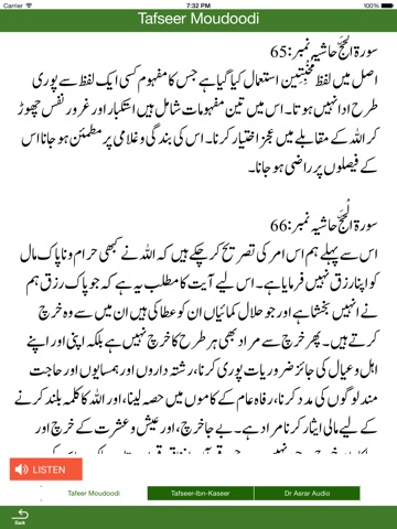 - Read Tafasir of the Quran by Taqi Usmani, Abul Ala Moudodi, Ibne Kaseer, and audio Tafseer of Dr. Israr Ahmed and Mufti M. Sayeed