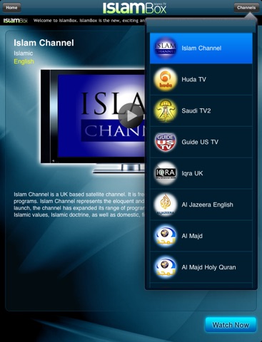 IslamBox - Islamic media is building at a remarkble rate mashaAllah. However, viewing all these channels is virtually impossible from home, without purchasing huge satellites with even bigger bills. Now with Islam Box you can view Islamic Media from Pakistan (QTV), the UK (Islam Channel), the US (Bridges TV), India (Peace TV), Saudia Arabia (Saudi 1 and 2); along with a variety of other channels insha Allah. All this from any where in the world as long your iphone, ipad or ipod is connected to wifi or 3G.