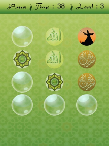 Islamic Learnings Memory Game is puzzle game for improving your focus and concentration. It has various islamic learnings symbols, icons, islamic texts for available for matching. Touch on Bubble with your memory to match the islamic learning symbols. Complete each level within given time. The number of bubble increases with every level.