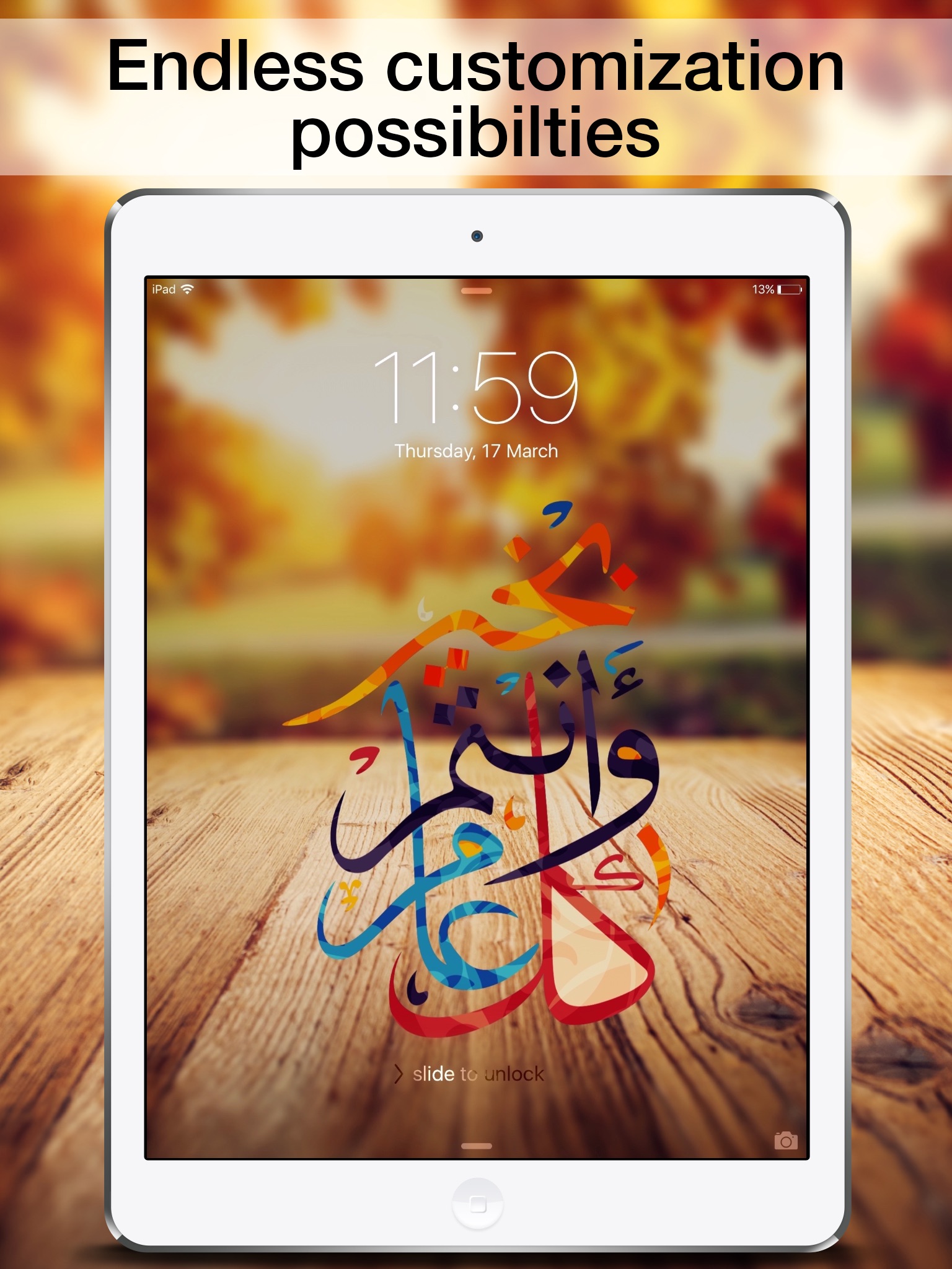 You can choose from the Islamic Themes available on the app and customize them as you like.