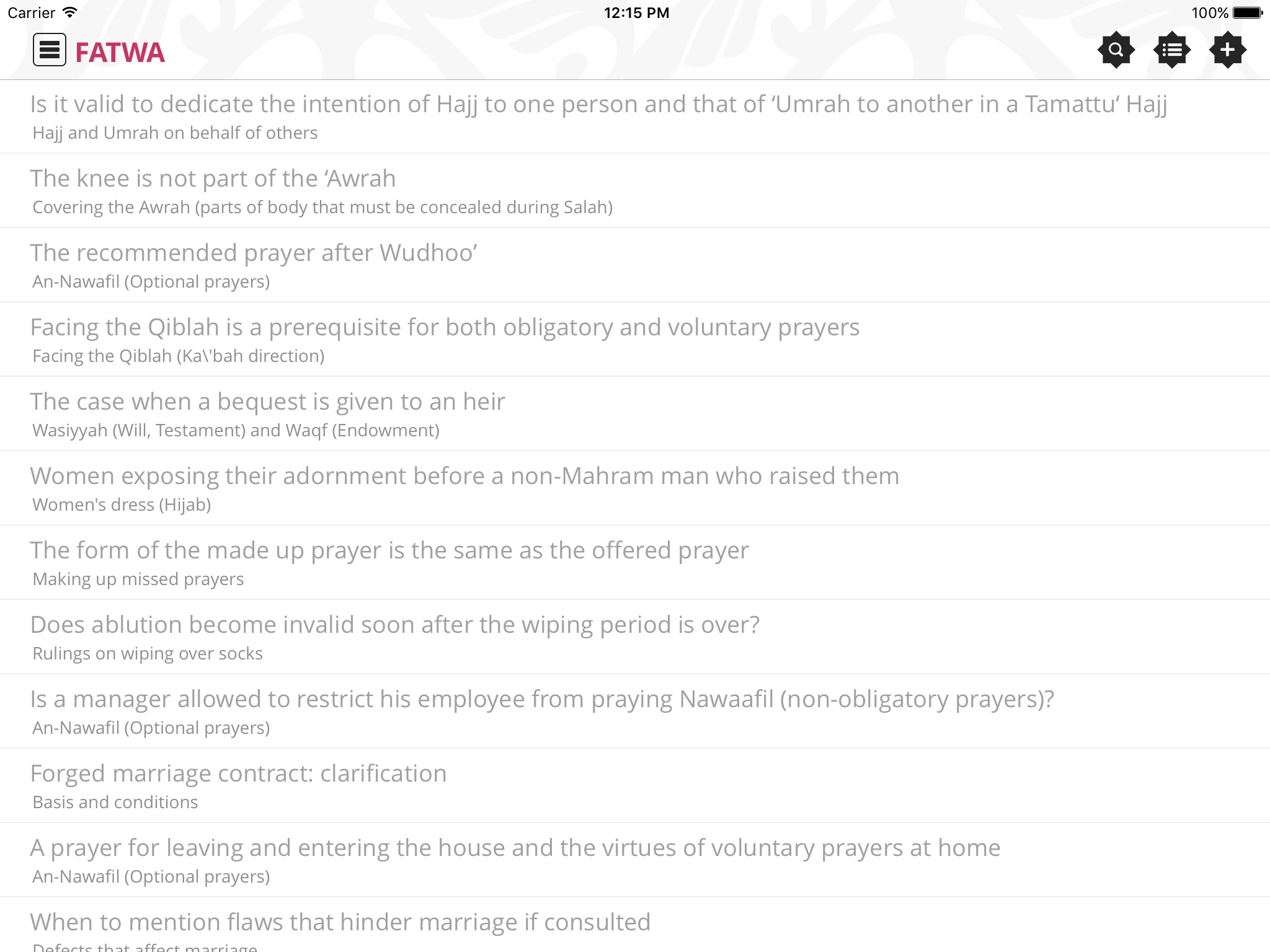- Facilidad en la búsqueda de las Fatawas.