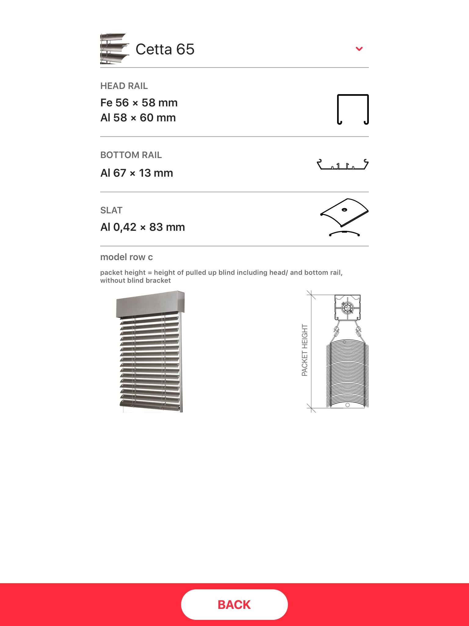 By selecting type of blind, width and height of a window, the application will calculate the packet height which will cover part of the window view-space but will also provide you an under-plaster option. Furthermore the application will calculate number of blind brackets, guiding rails and bearings placing. Smart tool for the office-use as well as for construction site.