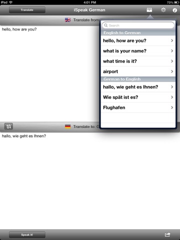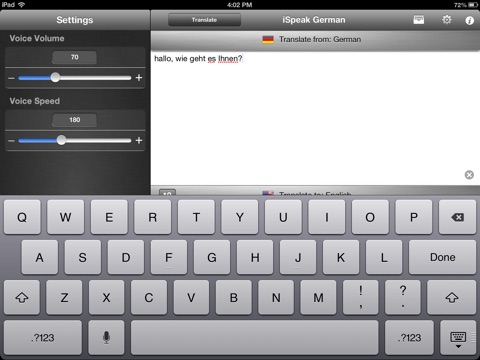 iSpeak was built with the design goals that have made our other Apps so successful and easy to use. Simply enter the text you want to translate, press the translate button, and the press the “Speak it” button to hear your translation. Its that easy! With another press of a button you can easily save as many translations as you would like on your iPhone, or email the translation to yourself or anyone else! iSpeak takes advantage of all the latest features of iOS including cut and paste so you can import articles and documents to translate, multitasking enabling you to listen to a translated phrase while working with other apps, and much more!