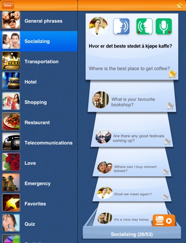 ▶ Use "iSpeak Norwegian" and native speakers will guide you step by step.