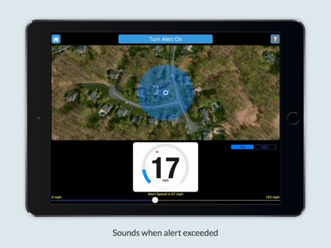 To turn a speed alert on, use the slider to select the desired alert speed then click Turn Alert On. When you are at the alert speed plus 5 mph or 5 kph, or higher, an audible alert voice or sound will be heard and continue to be heard every 5 seconds until your lower you speed below the alert speed or click Turn Alert Off.