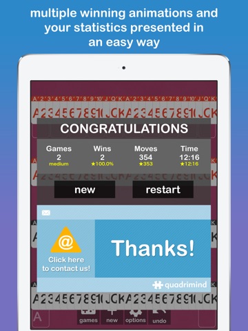 The Spider Solitaire by Quadrimind has a simple and intuitive interface with a smart gameplay that provides a dynamic game experience even in portable devices.