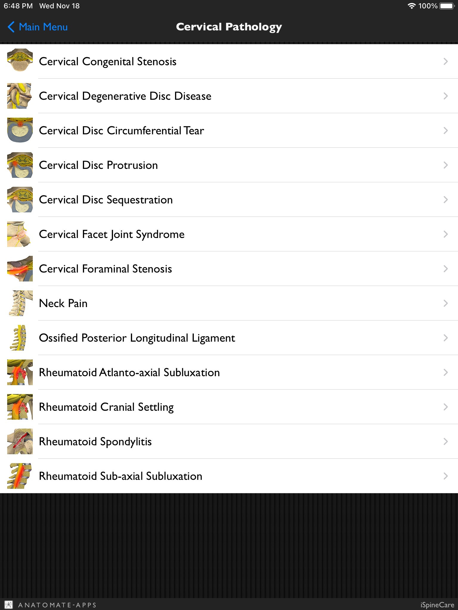 iSpineCare is an information resource for spine anatomy, function and disease. It is a presentation library of anatomical visualizations, spine pathologies, medical images and educational notes. Whilst this app is primarily for clinicians providing patient education, it can also be useful to anyone who wants to know more about spine health.