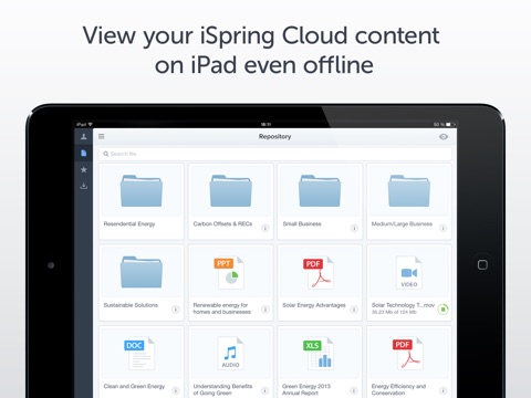 iSpring Cloud App is a free iPad app that automatically synchronizes with your Cloud account. You have all your presentations at hand, whether online or offline.