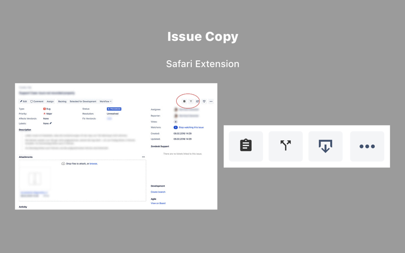 Safari Extension inserting buttons for fast copy of issue key + summary for better copy&paste usage.