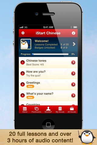 Die App. Ist Super für ein Einstieg. Da ich nebenbei auch chinesischunterricht hatte, konnte ich die App gut gebrauchen. Mit Bildern bespickt, stört es nicht weiter, dass es in englisch ist. 5 Sterne^^