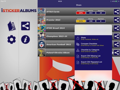 • Export your checklists of missing or repeated stickers, in CSV (comma separated values) format