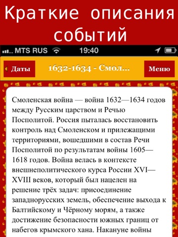 Приложение «История России: правители и даты» поможет освежить ваши знания по истории, вспомнить хронологию событий, ключевые даты.