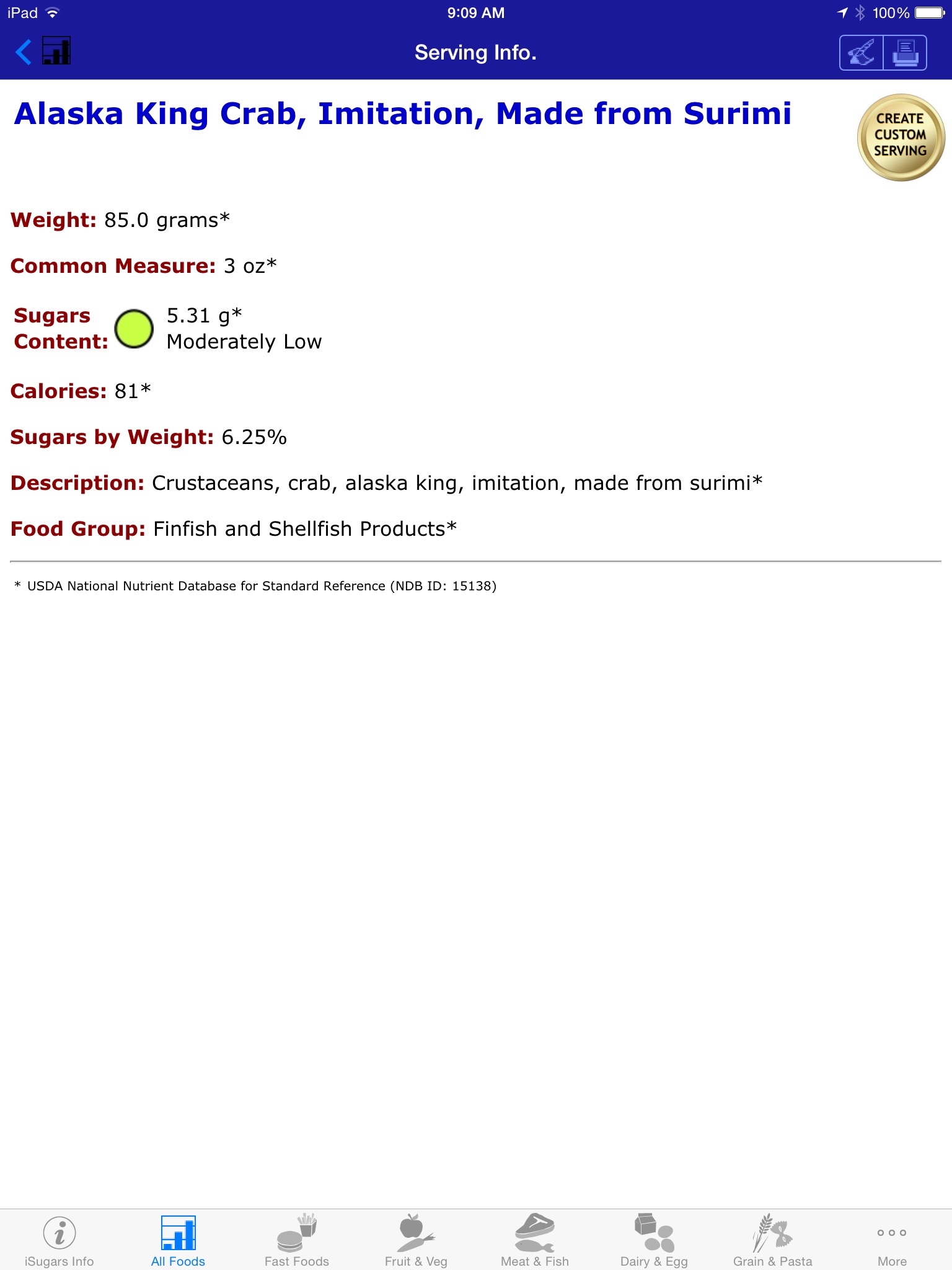 iSugars is one of 10 iNutrient apps based on the USDA National Nutrient Database. The others include: