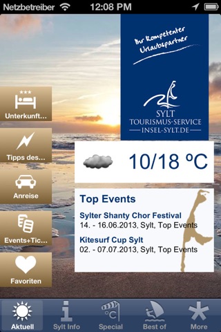 Die iSylt-App gibt nicht nur aktuelle Informationen zum Wetter, zur Anreise oder zu den zwölf Ortschaften der Insel - hier wird auch direkt gebucht: ob Hotel oder Appartement oder das Veranstaltungsticket für unterhaltsame Stunden. Aktuelle Veranstaltungen und News sind sofort aufrufbar.