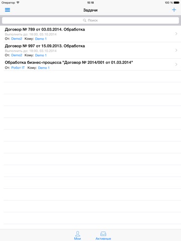 Приложение позволяет работать над задачами совместно, обсуждать, делегировать задания, уточнять позиции перед согласованием. Непосредственно в приложении можно добавлять, удалять, просматривать вложения (сканы документов, таблицы с расчетами, любые тексты, фото и т.п.).