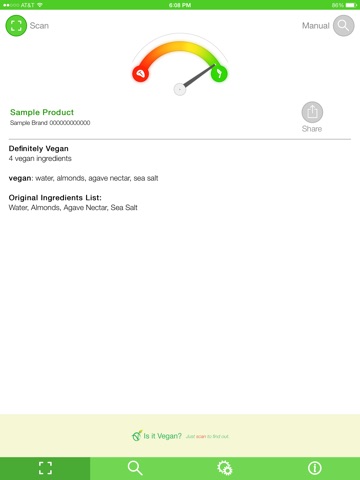 This app is the ideal app for people who are vegans, people who are new to the vegan world. This app have a lot of bugs that needs correcting. When food shopping I use this app to determine if the product Im buying is vegan. At times this app works but other times this app doesnt work. If the developers fix these minor hiccups, this app would do great wonders; especially to new vegans such as myself.