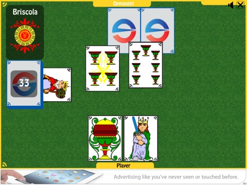 Play Briscola the Italian card game played with 40 cards against the computer. Aces and Three are the highest cards but the Briscola, the italian name of Atout, is the suit able to get pretty all the cards. Have fun with Briscola