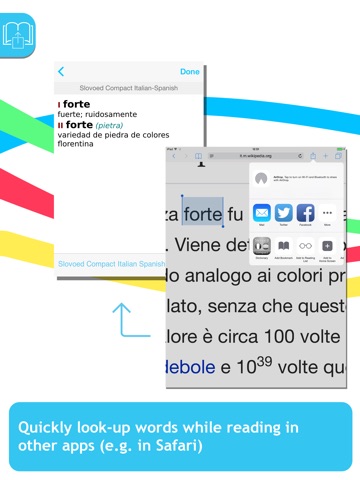 • No Internet connection required: simply download the dictionary once and use it on your iPhone/iPad/iPod Touch without any additional expense.