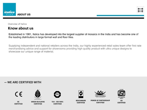This app is designed to provide you the best experience to see and feel the italica tiles product on your digital device.