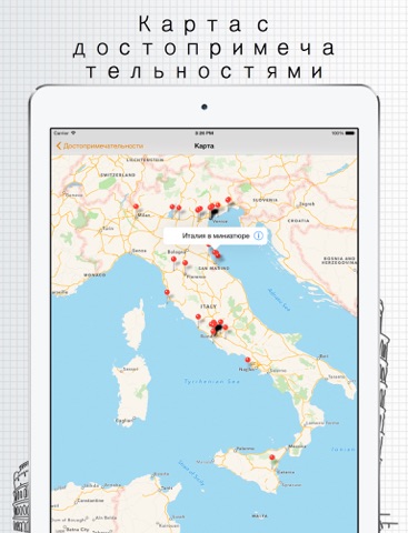 - карта Италии с достопримечательностями. Вы сможете себя обнаружить на карте и ближайшим маршрутом добраться к нужному месту
